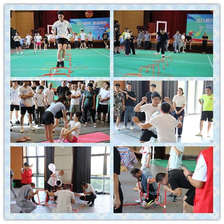 跳箱障礙物項(xiàng)目中,隨著比賽開(kāi)始的響令,第一位隊(duì)員迅速通過(guò)各輪障礙,一躍而上跨過(guò)跳箱,成功折返與隊(duì)友接力,矯健的身姿和默契的配合贏得觀戰(zhàn)選手的喝彩;雙人仰臥起立項(xiàng)目考驗(yàn)著選手們的體力與耐力,選手們腳對(duì)腳、手握手,后仰俯身織成一條呼嘯的波浪,短短的三分鐘,成員們的臉上都留下了運(yùn)動(dòng)的汗水;在呼吸的力量趣味項(xiàng)目中,肺活量王者們鼓起腮幫猛吹,強(qiáng)勁的氣息經(jīng)過(guò)長(zhǎng)長(zhǎng)管道,快速吹破了各個(gè)氣球,更有隊(duì)伍創(chuàng)下了吹破25個(gè)氣球的記錄;球轉(zhuǎn)乾坤項(xiàng)目,則最考驗(yàn)健身基礎(chǔ),選手們把雙手放在頭后,十指交叉,用身體互相對(duì)抗著球體,同時(shí)完成弓箭步下蹲動(dòng)作,訓(xùn)練有素的隊(duì)伍在本輪環(huán)節(jié)占據(jù)優(yōu)勢(shì),新手隊(duì)伍則在本環(huán)節(jié)稍顯落后。